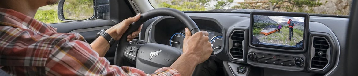 The Bronco Sport lineup offers five fantastic trim levels, each one featuring a sleek and sporty silhouette. The Base trim bears the instantly recognizable Bronco badge on its Carbon Black grille and gives you a flip-rear window for easy access to cargo. A safari-style roof gives you and your passengers more headroom than conventional roofs while enhancing the Base trim's distinctive appearance. On the Big Bend model, you'll find a Carbonized Gray grille showcasing the Bronco badge, heated mirrors, and a keyless-entry keypad.