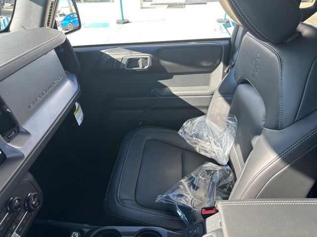 18 Bright Machined Aluminum Wheels, 3.73 Axle Ratio, 4-Wheel Disc Brakes, 7 Speakers, ABS brakes, Air Conditioning, Alloy wheels, AM/FM radio: SiriusXM with 360L, AM/FM Stereo, Auto High-beam Headlights, Auto-dimming Rear-View mirror, Automatic temperature control, Brake assist, Carbonized Gray Molded-In-Color Hard Top, Compass, Connected Navigation, Delay-off headlights, Door Storage Bags, Driver door bin, Driver vanity mirror, Dual front impact airbags, Dual front side impact airbags, Electronic Stability Control, Emergency communication system: 911 Assist, Exterior Parking Camera Rear, Front & Rear Floor Liners w/o Carpet Floor Mats, Front anti-roll bar, Front Bucket Seats, Front Center Armrest, Front dual zone A/C, Front fog lights, Front License Plate Bracket, Front reading lights, Front wheel independent suspension, Fully automatic headlights, Hard Top Sound Deadening Headliner, Heated door mirrors, Heated front seats, Heated Leather-Trimmed/Vinyl Bucket Seats, Heated steering wheel, Illuminated entry, Integrated roll-over protection, Internet access capable: FordPass Connect, Leather Shift Knob, Low tire pressure warning, Navigation system: Connected Navigation, Occupant sensing airbag, Outside temperature display, Overhead airbag, Overhead console, Panic alarm, Passenger door bin, Passenger vanity mirror, Power door mirrors, Power driver seat, Power passenger seat, Power steering, Power windows, Radio data system, Rear seat center armrest, Rear-Window Defroster & Washer, Remote keyless entry, Security system, SiriusXM w/360L, Speed control, Split folding rear seat, Steering wheel mounted audio controls, SYNC 4, Tachometer, Telescoping steering wheel, Tilt steering wheel, Traction control, Trip computer, Variably intermittent wipers, and Voltmeter. 2025 Ford Bronco 2025 Ford Bronco Outer Banks