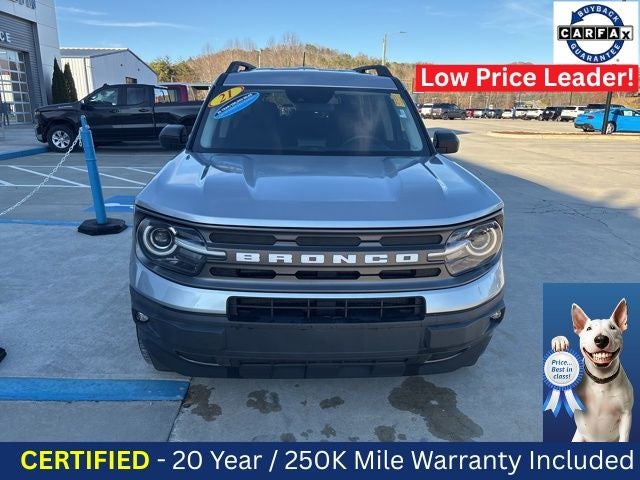 FREE 20 YEAR/250,000 MILE WARRANTY---------------CLEAN CARFAX HISTORY--------------SERVICE RECORDS AVAILABLE--------------BACKUP CAMERA---------------- AWD------------------BLUETOOTH MP3-----------------------REMOTE KEYLESS ENTRY---------------APPLE CARPLAY / ANDROID AUTO------------- SOUND PACKAGE SIRIUS XM SATELLITE RADIO---------- Big Bend Package (96B)-------------Exterior Parking Camera Rear----------------- Heated Front Bucket Seats=========Leather-Wrapped Steering Wheel------------------ Reverse Sensing System----------------- Roof rack: rails onlL----------------- Wheels: 17 Carbonized Gray-Painted Aluminum---------------Wireless Charging Pad.---------------------------------------------------------------------------------------------------------------------------------------2021 Ford Bronco Sport BIG BEND --------------------------------------------------------------------------------------------------------------------------------------------------------------------------------------------------------------------------
