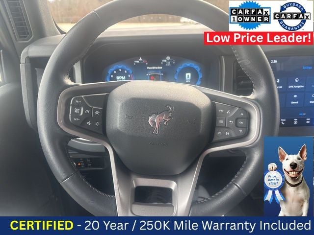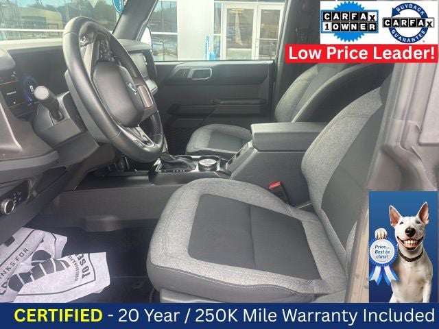 PLUS FREE 20 YEAR/250,000 MILE WARRANTY,! ---------------------------2-Door Intelligent Access w/Lock/Unlock---------------- Ambient Footwell Lighting,-----------Carbonized Gray Molded-In-Color Hard Top-----------------Connected Navigation--------------------- 1 OWNER / CLEAN CAR FAX -----------------------------------Dr & Pass Illuminated Sliding Visor Vanity Mirrors----------------- Equipment Group 222A Mid Package----------------Front Row Heated Seats-----------------Lane-Keeping System--------------------Rear Parking Sensors-------------- Remote keyless entry----------------SiriusXM w/360L--------------------------------- 2025 Ford Bronco BIG BEND HARD TOP --------------------------------------------------------------------------------------------------------------------------------------------------------------------------------------------------------------------
